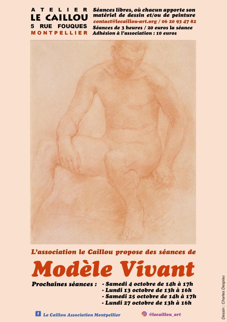 Pour rappel, les séances de modèle vivant sont libres (nous ne donnons pas de cours). Vous apportez votre propre matériel (supports, dessin, peinture). Nous mettons des chaises à disposition. Les séances de 3 heures permettent de travailler sur des poses courtes et/ou longues. Nous nous adaptons en fonction de vos demandes en début de séance.